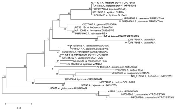 非洲国家输入埃及无足虫(蜱螨目:伊蚊科)的分子筛选——首次报道来自埃及圆蟒(鳞目:蟒蛇科)的latamblyoma