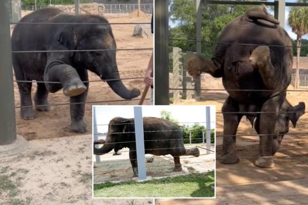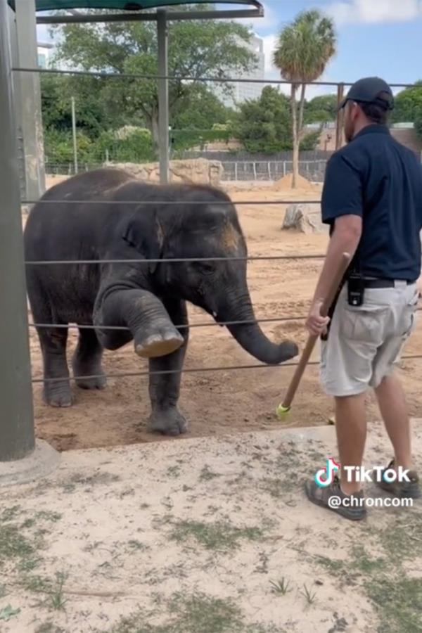 休斯顿动物园的大象每天都上瑜伽课,做倒立来保持健康