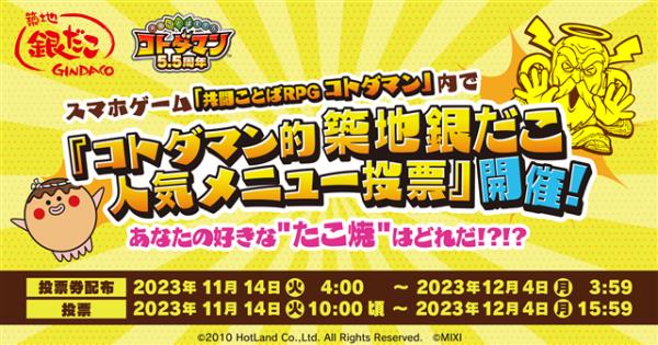 MIXI宣布首次“Kotodaman x筑地银田子”活动,提供有限的筑地银田子优惠券
