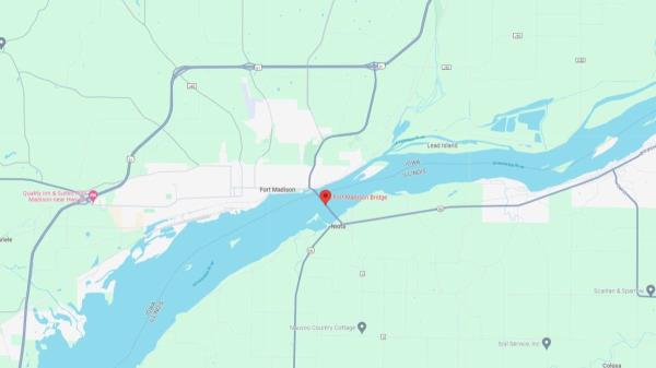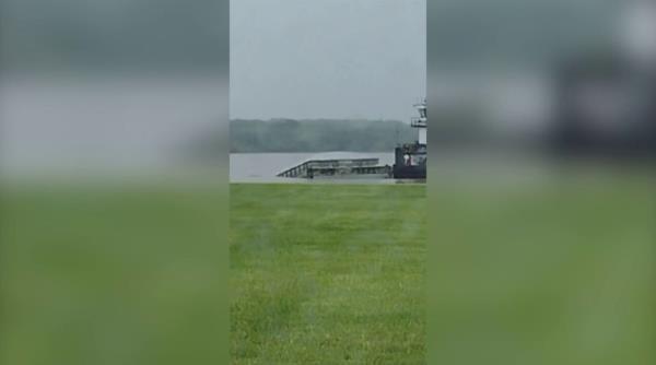 一艘大型驳船撞上了爱荷华州历史悠久的麦迪逊堡大桥,随后沉没