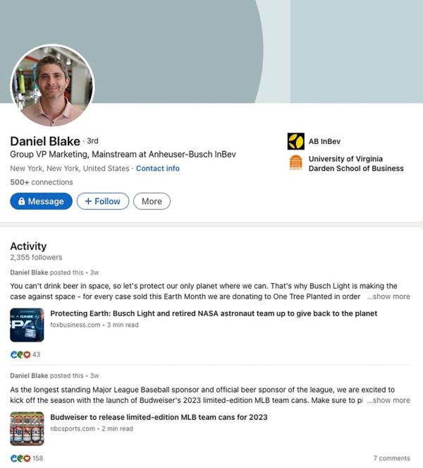 第二名百威啤酒营销主管因迪伦·马尔瓦尼的闹剧休假