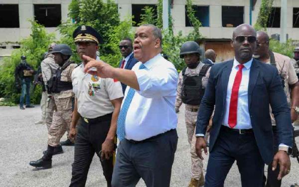 警方从黑帮手中夺回太子港医院后,海地总理康尼尔参观医院