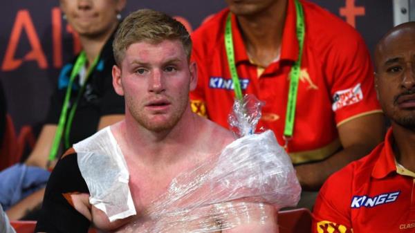 褐褐色的脸紧张地等待着海豚队的道具弗莱格勒