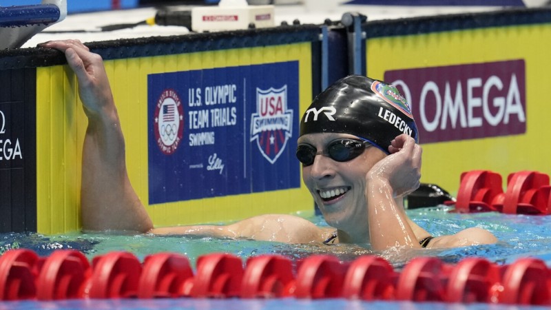 凯蒂·莱德基在美国奥运会游泳选拔赛上开局强劲,在400米自由泳预赛中领先