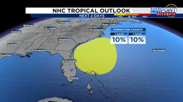 佛罗里达海岸的新系统预计会增加降雨和风暴的机会