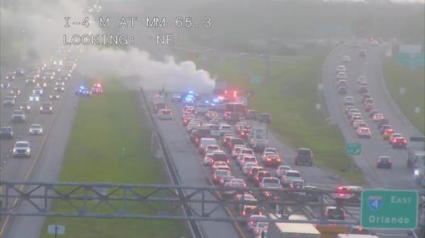 大火吞没了奥西奥拉公园路4号州际公路上的自卸卡车