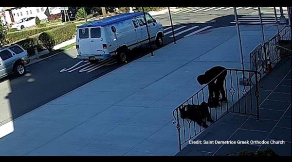 去教堂的女人被随意推下台阶,抢劫,录像