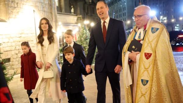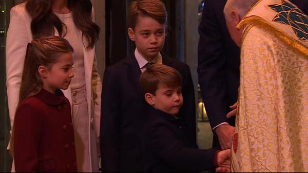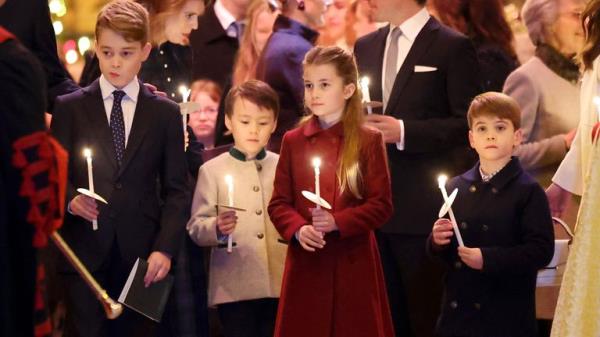 在凯特的圣诞音乐会上,顽皮的路易斯王子吹灭了妹妹夏洛特的蜡烛