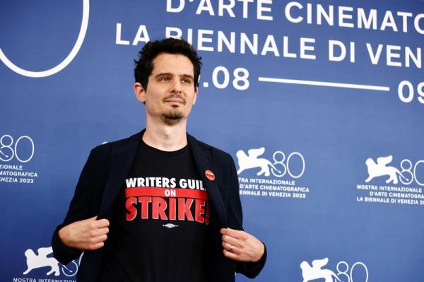 2023年威尼斯电影节开幕式上的抗议t恤和华丽礼服