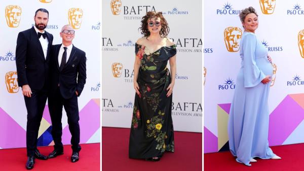 2024年英国电影和电视艺术学院奖颁奖典礼:颁奖典礼前,明星们站在红地毯上