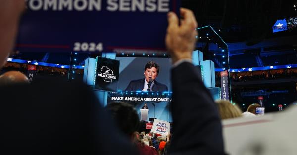 塔克·卡尔森(Tucker Carlson)的急躁和即兴表演点燃了大会观众的热情