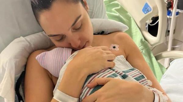 盖尔·加朵露出了刚出生的女儿奥莉的脸