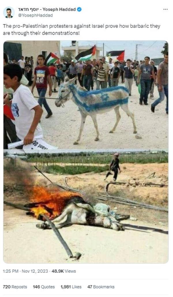 用以色列的颜色画的驴点燃了?2011年和2014年的照片被虚假传播
