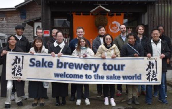 为日本北部的国际学生和教授举办清酒酿酒厂之旅,向世界传播清酒