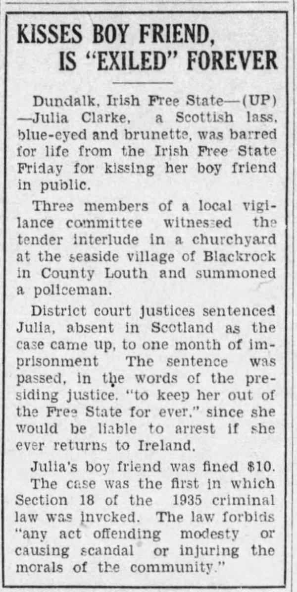 20世纪30年代爱尔兰的一个公开接吻是如何引起全球轰动的
