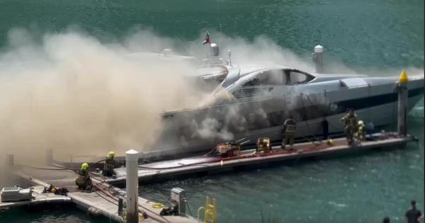 迪拜码头火灾:船员们正在扑灭游艇大火