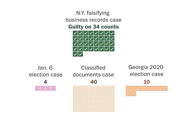 特朗普被判34项罪名成立,并面临54项其他刑事指控