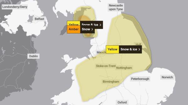 英国天气:由于几场体育赛事被取消,新的琥珀色大雪预警