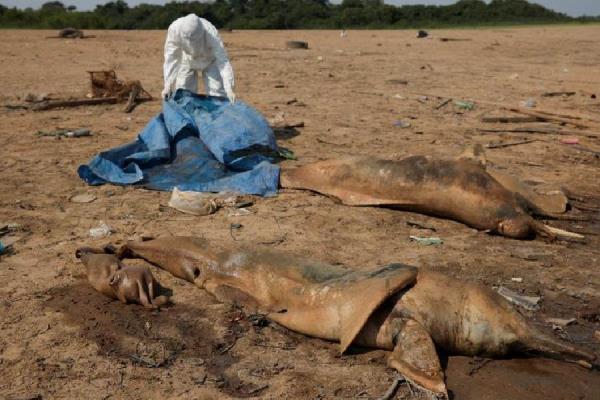 在严重的干旱和高温中,亚马逊地区有数十只海豚死亡