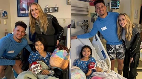 堪萨斯城酋长帕特里克·马霍姆斯,妻子看望在超级碗游行中被枪击的孩子