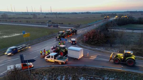 抗议的农民封锁了高速公路坡道