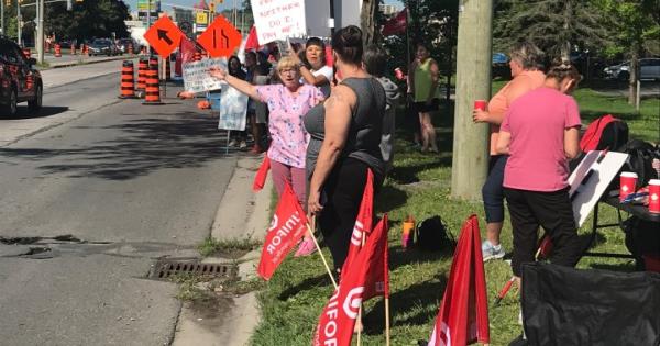 金斯顿医疗保险公司的工人们站在工资问题的信息纠察线上