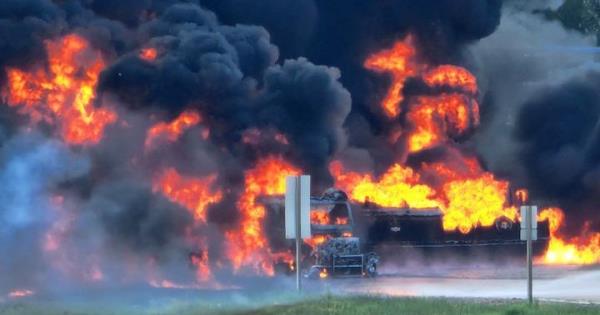阿尔塔省怀特库尔特的急救人员,对火车、油罐车相撞事故作出反应