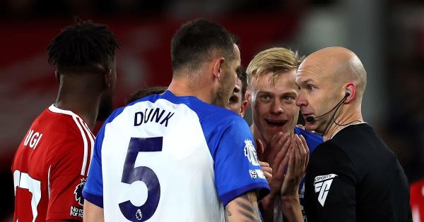 布莱顿的刘易斯·邓克违反了英超规则,这是他12年来第一次吃到红牌