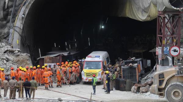 印度救援人员距离营救被困隧道两周多的41名工人只有几步之遥