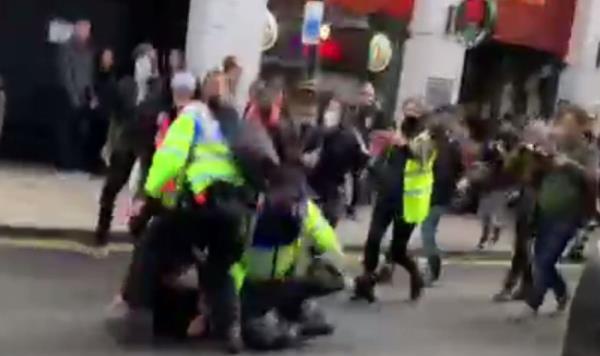 在人群陷入混乱之前,警察将支持巴勒斯坦的抗议者制服