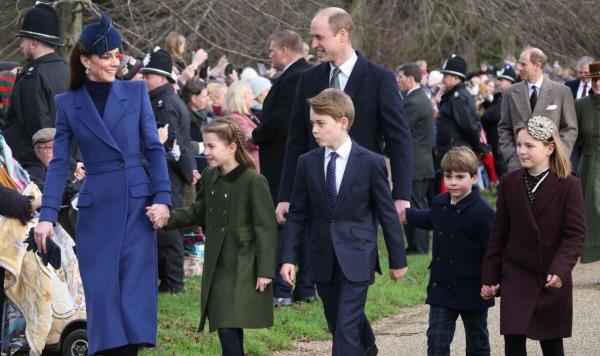 乔治王子、夏洛特王子和路易王子带着年轻的皇室朋友来到圣诞教堂