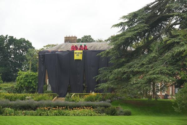 一群示威者爬上了苏纳克的二级保护选区庄园,抗议授予100多个北海油气开采新许可证的计划。