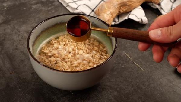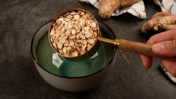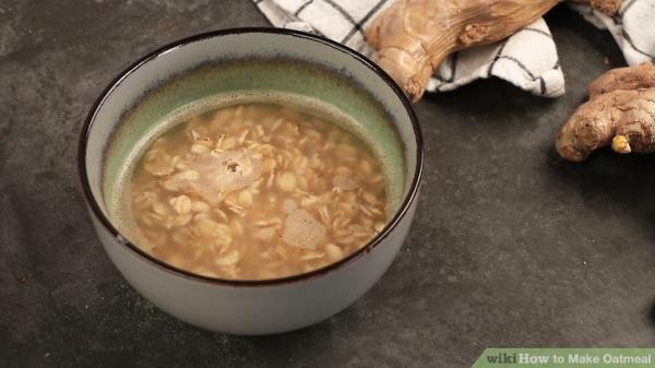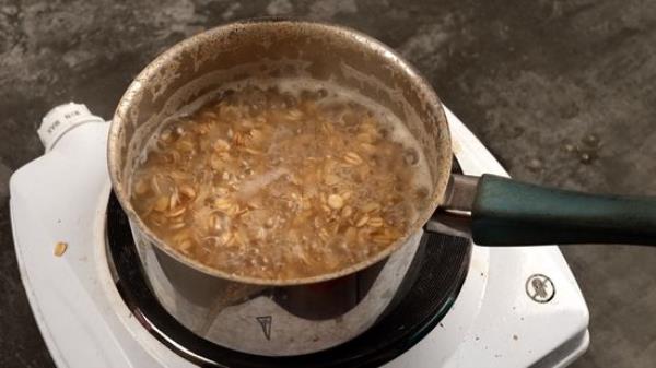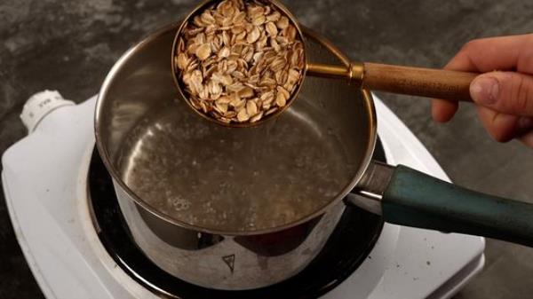 把开水倒在燕麦上。 o