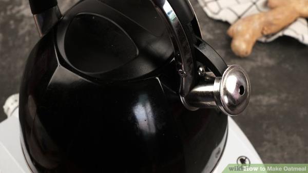 当水烧开后,关火,打开壶嘴,让一些蒸汽逸出。搅拌燕麦片。