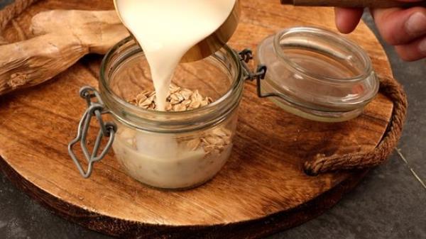把燕麦放在冰箱里冷藏一夜。盖上盖子