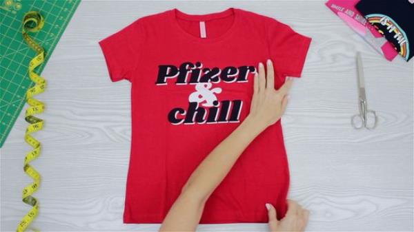 把衬衫平铺在一个平面上,背面朝向你。这些类型的衬衫在后面有一个简单的轮廓,由较小的斜线组成。它们在宽松的t恤上效果最好。如果你想在衣领周围做一个设计,让衬衫的前面面向你。