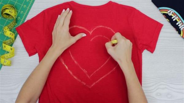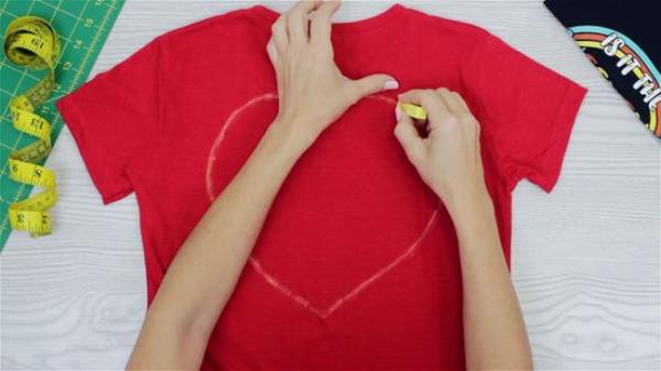 沿着折叠的边缘画出你想要的形状的一半。把你想要的形状纵向分成两半,然后沿着衬衫的折叠边缘画。形状可以是你想要的任何大小,但更大的形状在这种风格下看起来更好。记住形状的宽度。它越宽,就越能揭示真相。从领子下面延伸到一半或三分之二的地方。