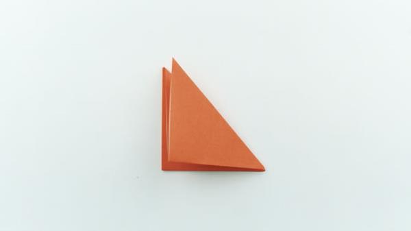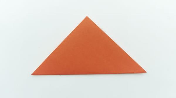 对角线对折一张正方形的纸。把两个相对的角凑在一起,把褶子折起来。这将形成一个三角形。你可以使用任何类型、颜色或大小的正方形纸。折纸最适合初学者,因为它最容易折叠。