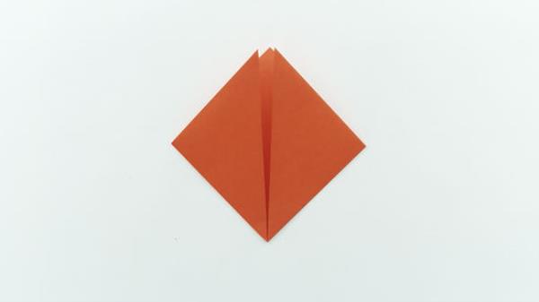 到右角,从中间往下折。然后打开它回到之前的三角形形状。不要一直把纸展开,让它变成方形。