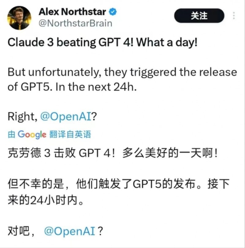 而根据网友们的分析,事实上 Claude 3 似乎正是有意图的选择在这样一个 OpenAI 可能无法快速实施“打压”的时间节点快速上线,出其不意打 OpenAI 一个措手不及。